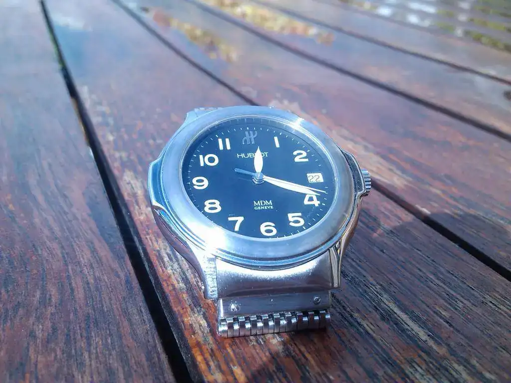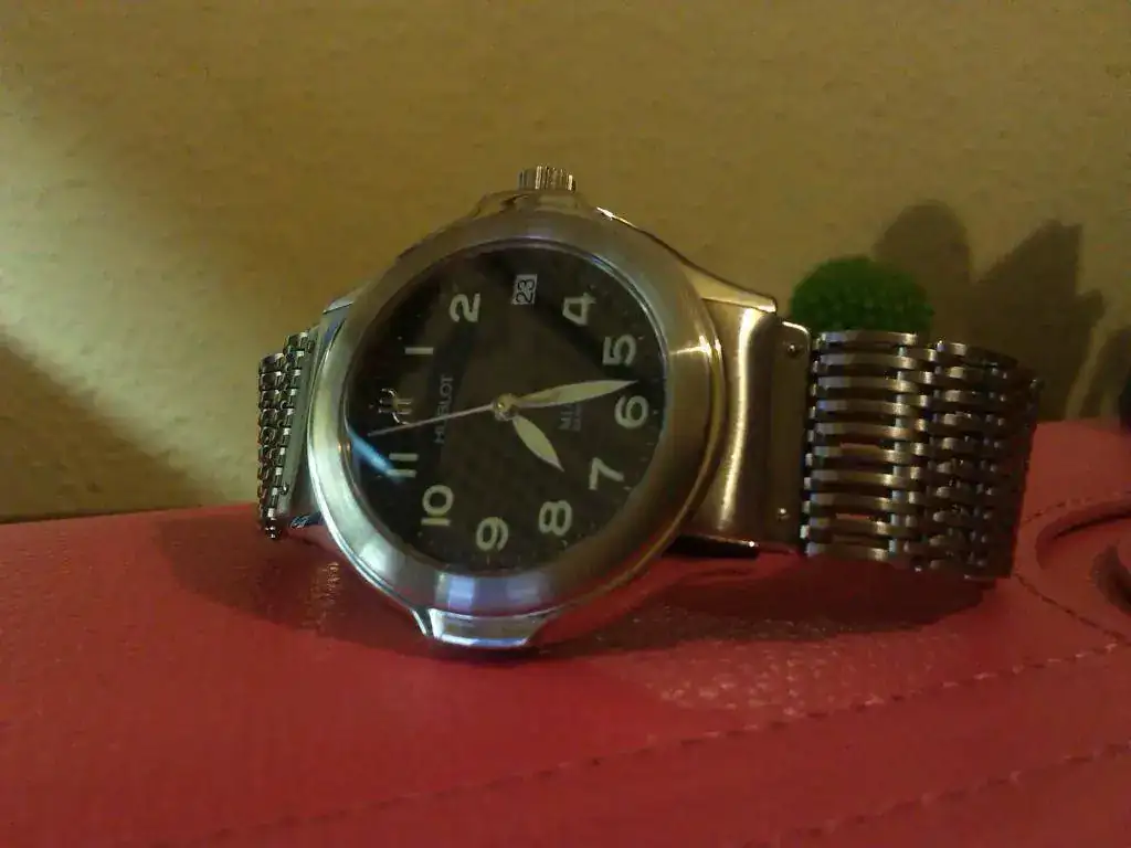 Buenas tardes compañeros saco para venta este fantástico Hoblot Elegant Automático, que me llegó fruto de un cambio, en un estado magnífico, y extremadamente cómodo de llevar. Para contacto por MP. El reloj lo llevé a mi relojero de confianza y le realizó una revisión básica y la sustitución de dos tornillitos del armis un poco deteriorados. TODO UN LUJO A PRECIO DE GANGA.