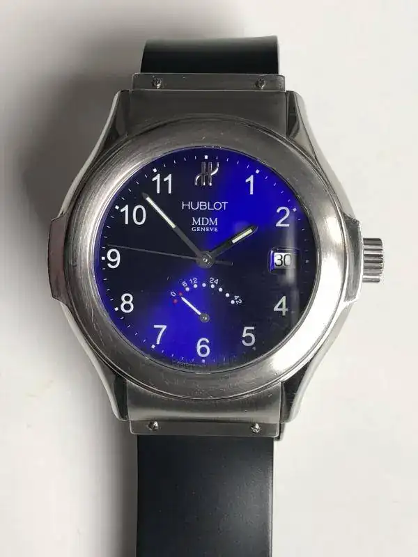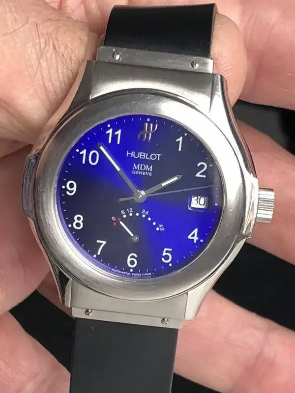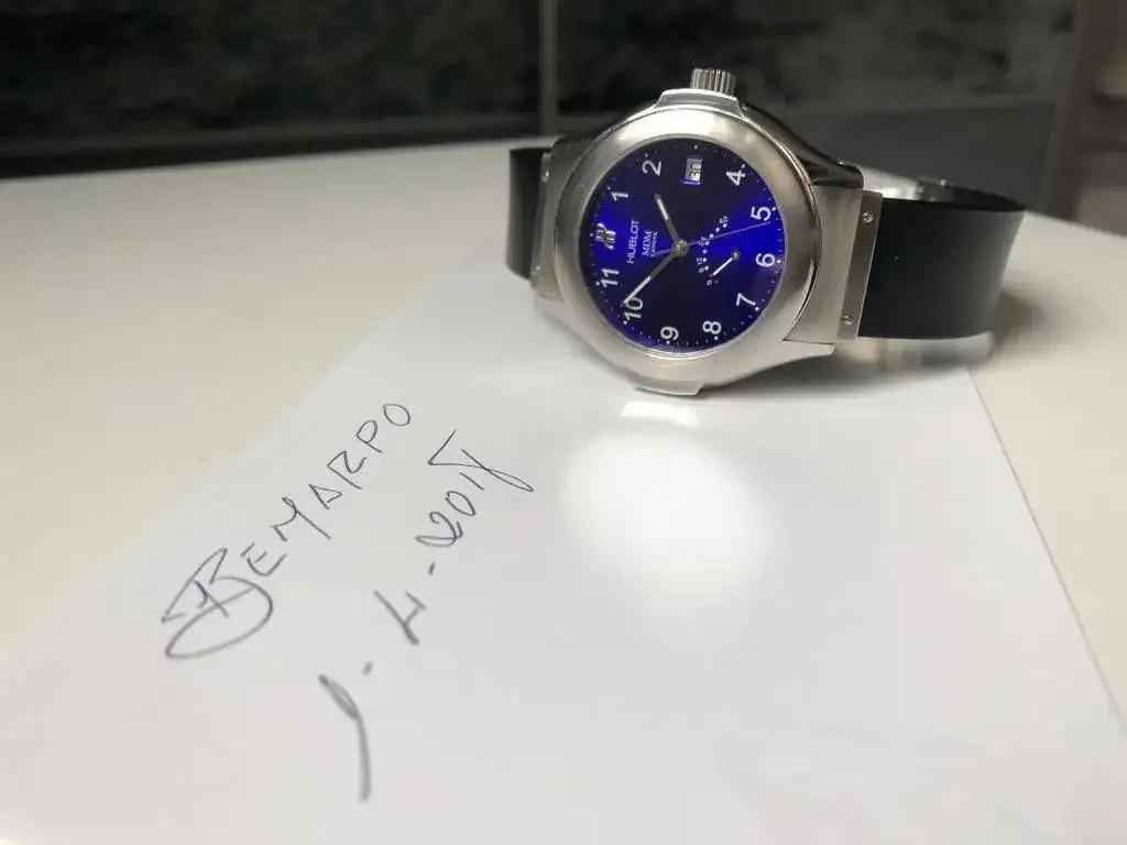 saco a la venta este Hublot Elegant con indicador de reserva de marcha, con esfera en un color azul precioso que dependiendo como le de la luz tiene distintas tonalidades todas muy bonitas.