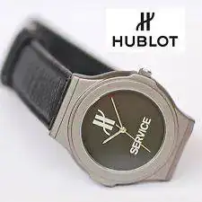 Cuando Hublot empezó a tener auge dejaba en préstamo los Hublot Service watch. De estos relojes se hicieron una tirada inicial en aluminio inyectado leyéndose en la esfera SERVICE y en la tapa NOT FOR SALE. Estamos hablando de finales de los 80, principios de los 90. Estos relojes tuvieron su boom y durante un tiempo se buscaron incluso por coleccionistas.