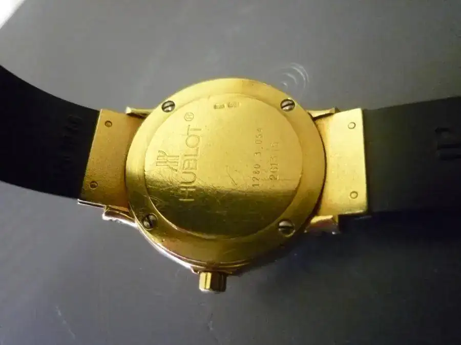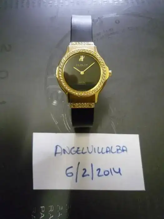 Por haber recibido mi señora estas navidades otra pieza y no utilizar esta, pongo a la venta este maravilloso reloj Hublot tamaño femenino de oro y brillantes.