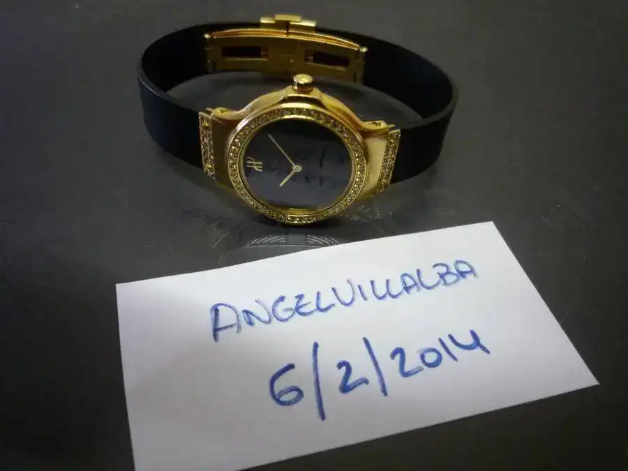 El reloj, como se observa en las fotos, está en bastante buen estado, tiene esfera negra y brillantes en el bisel y en el cierre.
