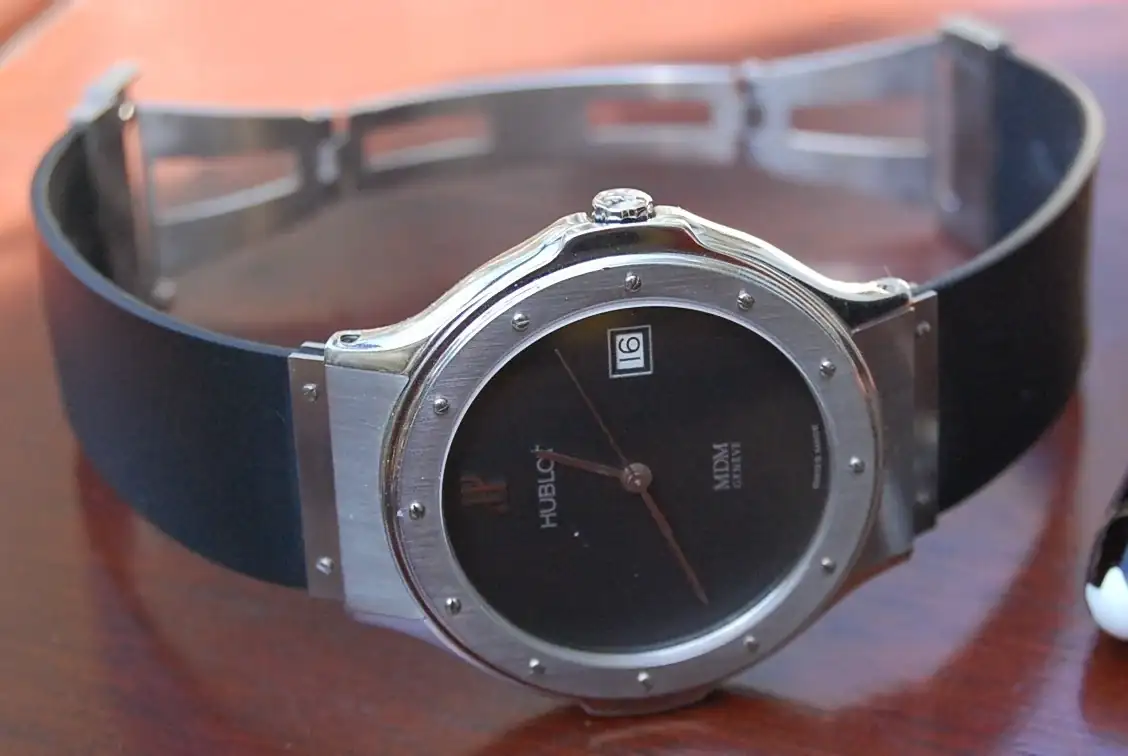 Desde mi punto de vista, y sin que se me trate de hereje (al menos hasta que haya podido explicarme) Hublot tiene puntos en común con estas dos venerables. Desde luego no es su patrimonio histórico, porque Carlo Crocco fundó MDM (Montres Danielle Marie) en 1980, y prácticamente de la nada... ¿Nada? No, porque su familia ya estaba en el sector relojero con la empresa Binda, distribuyendo Vetta primero y creando el fenómeno Breil más tarde.