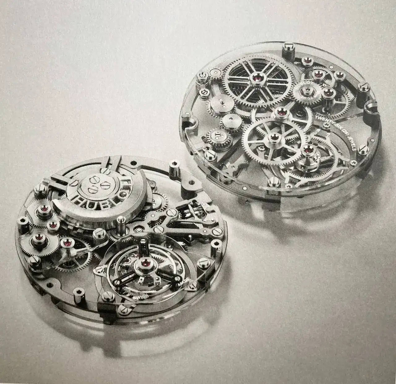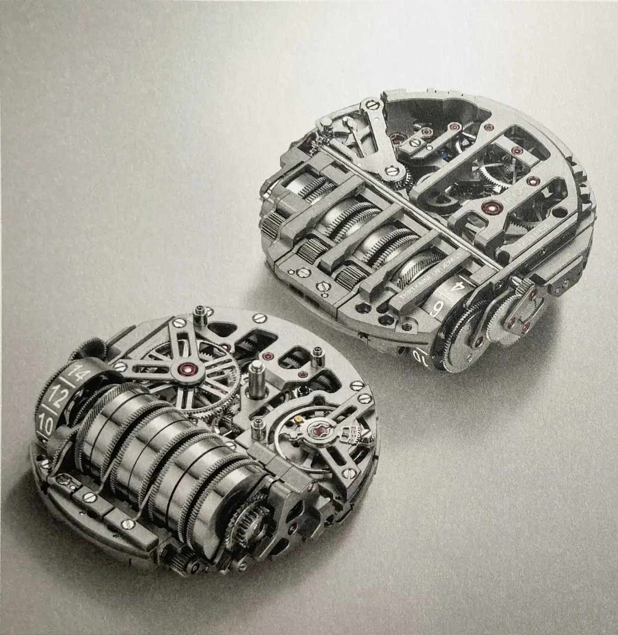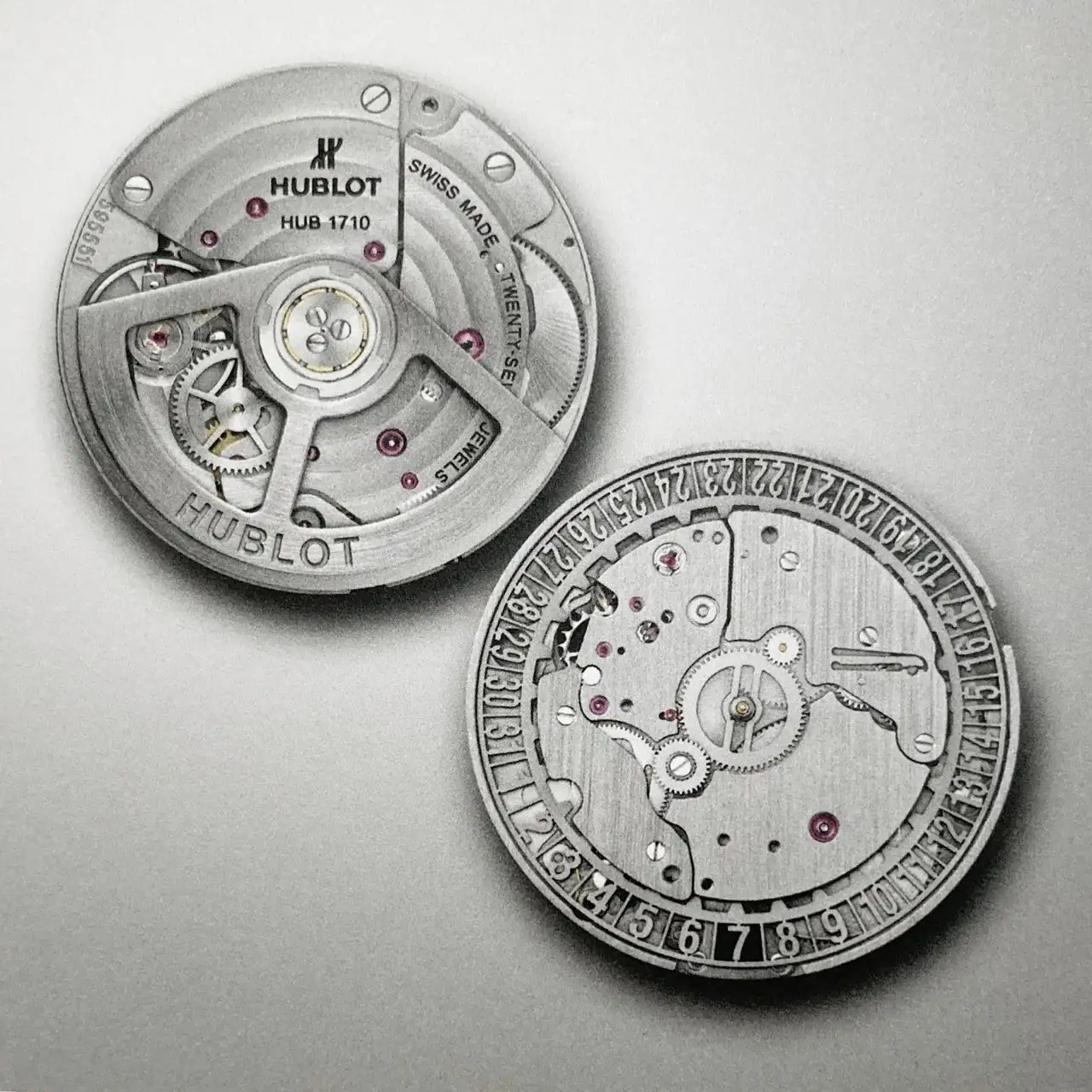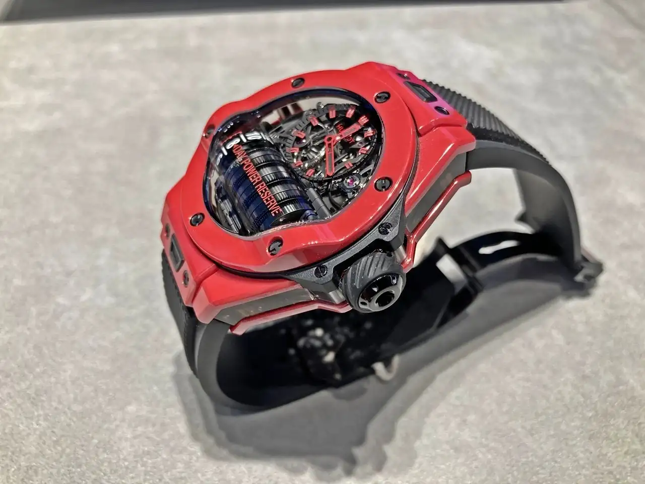O los calibres propios. Siete creaciones 100% in-house -de momento-, que abarcan desde el cronógrafo Unico HUB1280 hasta el sofisticado HUB9011, con 14 días de reserva de marcha gracias a sus 7 barriletes engranados en serie. Dos tourbillones (uno biaxial), dos con forma de tonel para el Spirit of Big Bang y dos calibres ajenos, para la colección Classic Fussion, suministrados por Sellita según las especificaciones de Hublot.