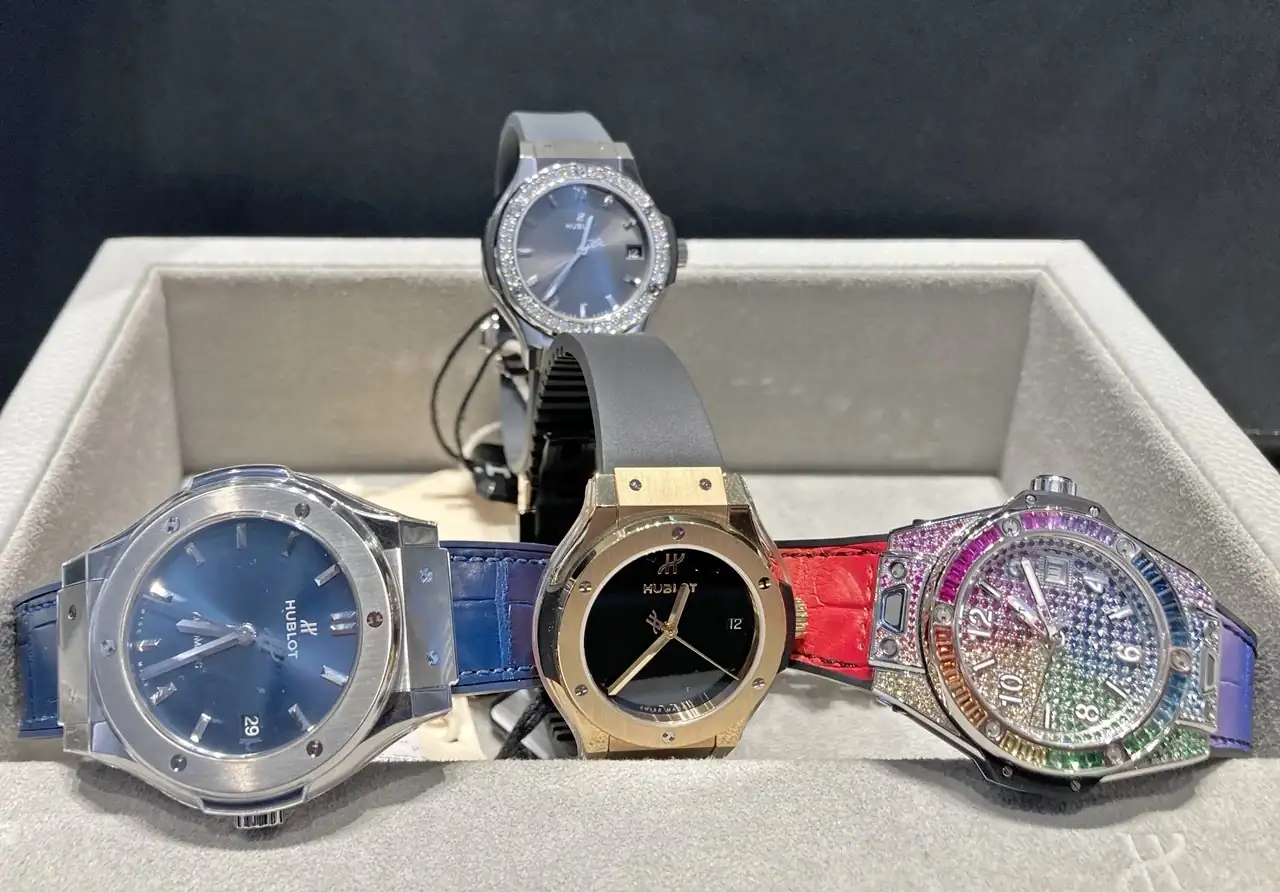 Todos estos ingredientes cristalizan hoy en varias colecciones que pueden satisfacer a cualquier cliente, sea o no aficionado a la relojería, que ya sabemos que los hay de los dos tipos. Desde el Classic Fussion tres agujas o cronógrafo en distintos materiales (acero, oro, titanio, cerámica... y combinaciones de todos ellos, ya saben, Fussion) hasta los llamativos Big Bang en todos esos materiales a los que se añade el zafiro que, en una nueva vuelta de tuerca Hublot tiñe de colores. Aquí encontraremos desde cronógrafos de manufactura hasta turbillones de dos ejes o reservas de marcha de diez días. Además, han reeditado el modelo original en varios tamaños.