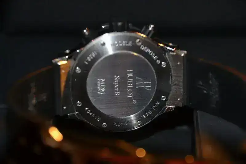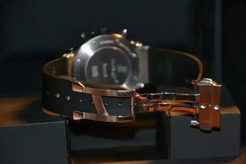 Como podréis observar tiene esfera negra y ya monta cierre moderno Hublot por lo que no tendréis que preocuparos en cortar la correa.