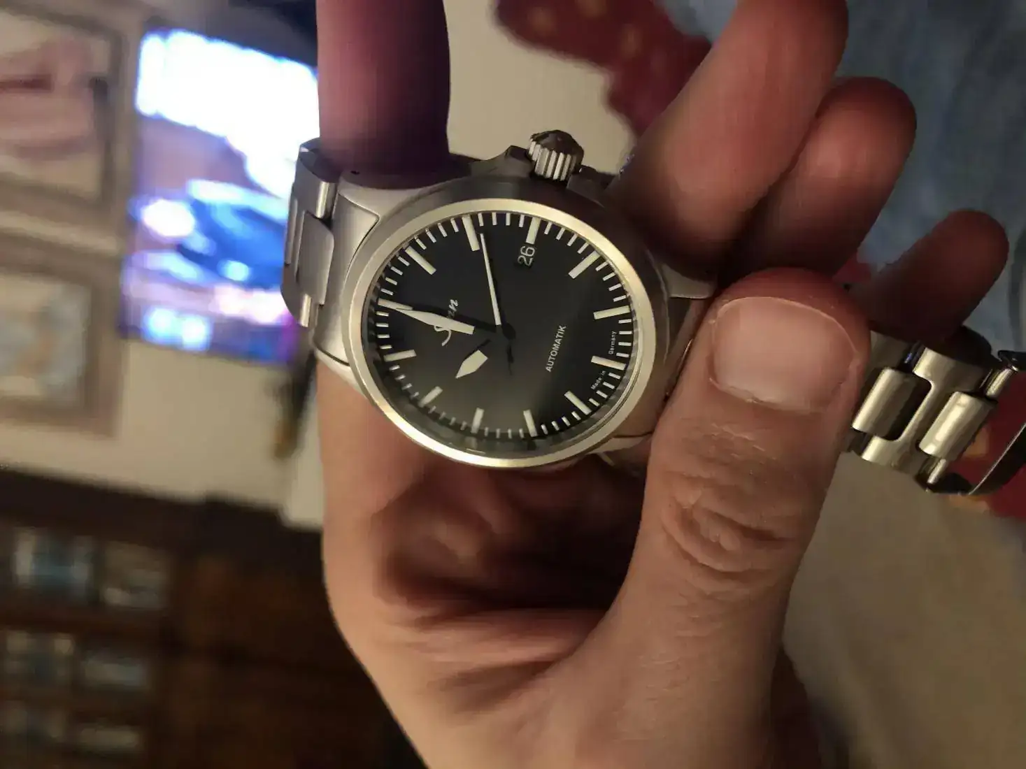 Te pongo unas fotos más de lejos. El lug tu lug lo he medido con un calibre y es de 48 mm exactos, el mismo del Seamaster 300 y del Rolex explorer 39. Saludos