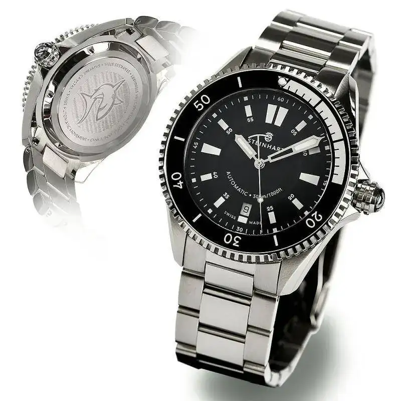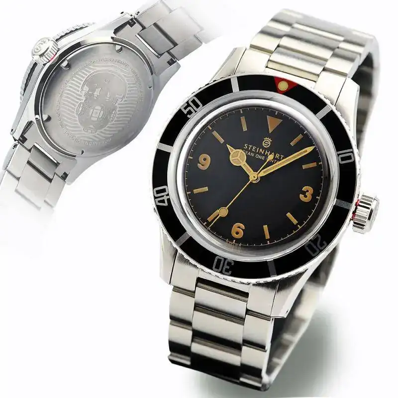 Oye, ¿y no has mirado los Steinhart? Aparte de los fusilados más habituales que tienen índices de puntos, tienen otros que igual se ajustan a lo que buscas. Tamaños de 42 a 45, zafiro, maquinarias suizas y precio intermedio entre los más baratos y los más caros que se están viendo. Sé lo que vas a decir de la manecilla horaria del primero, pero lo pongo porque aunque a mí tampoco me entusiasman las de los Tudor (¿snow flake se llaman?), éstas tipo Mercedes me entran mejor por el ojo.