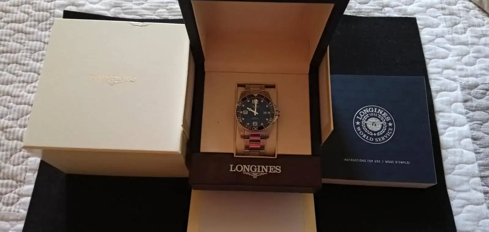 Saco a la venta este precioso Longines Hydroconquest cerámico en color azul, que apenas he usado en estos últimos meses. Está en un estado perfecto, salvo algún pelillo/arañazo en el cierre (lo típico), pero poco más. Fue comprado en CO nacional en mayo de este año, así que tiene aún mucha garantía por delante. Para este reloj no quiero ningún tipo de cambio. El envío lo hago por Nacex 24h, y va incluido en el precio. Para cualquier cosa un privado.