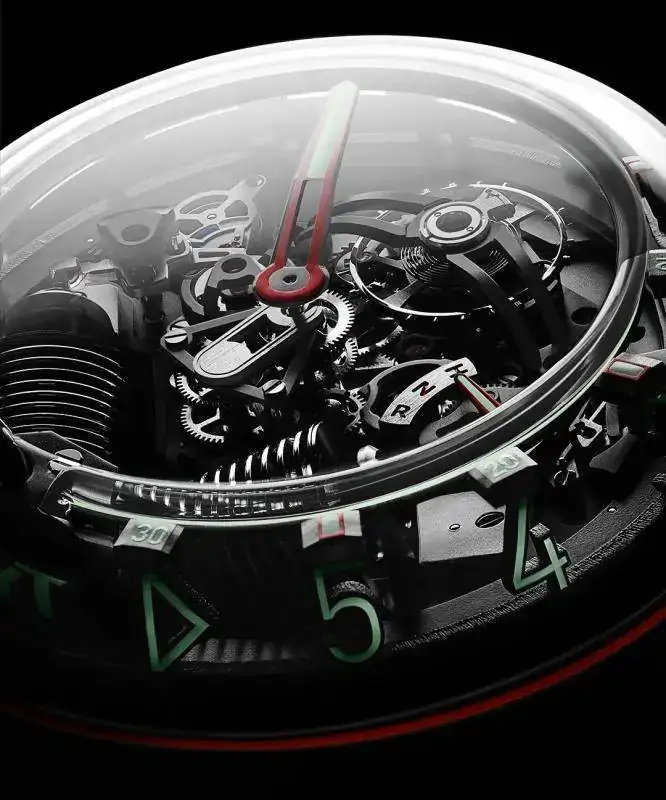 Por lo demás, y viendo las imágenes, siguen siendo relojes únicos: Una base mecánica de cuerda manual APRP (AudemarsPiguet Renaud Papi, ahí es nada) sobre el que se acopla un módulo "fluídrico" esencia de HyT. La comunicación entre ambos mecanismos se produce gracias a un sistema de seguidores de leva que pasa de la rotación al movimiento lineal.