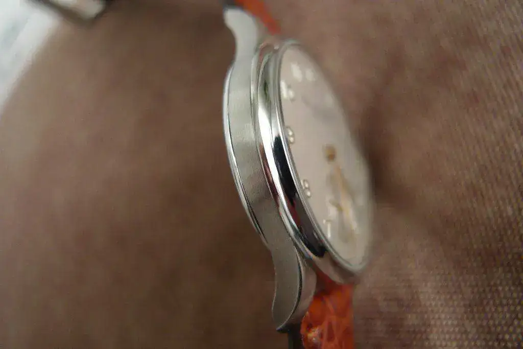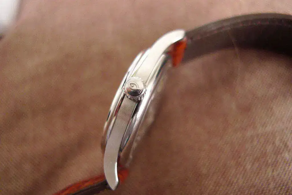 Sus medidas son, diámetro 35 m.m. sin contar corona, 38 m.m. contando la corona, 7 m.m. de grosor y 18 m.m. entre asas para la correa.