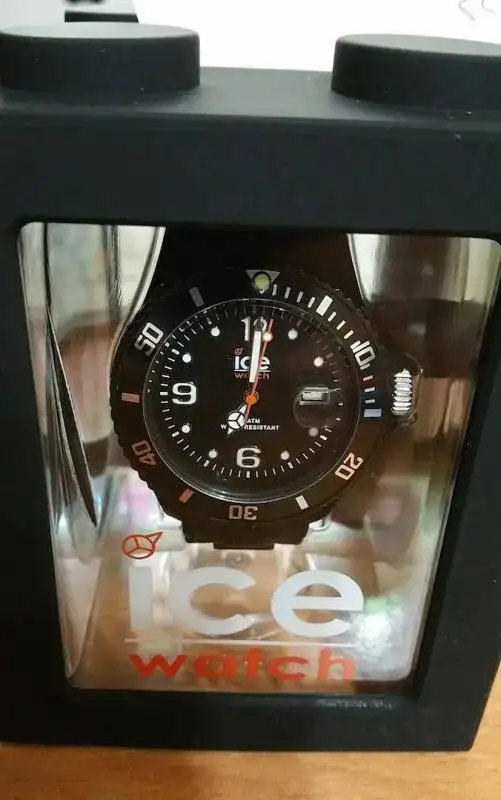 ice watch negroModelo:ice satAño de compra:2013Estado: (nuevo/usado)semi nuevoMovimiento:cuarzoCaja (medidas):38 sin coronaCristal:Esfera:negraBrazalete:caucho/silicona¿Estuche? s/nsi/ hucha¿Documentación? s/nsi/completo¿Garantía vigente? s/n