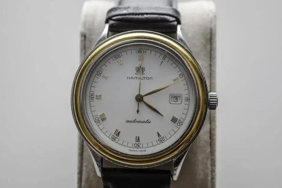 Alguien sabe a que modelo concreto de reloj de la marca Hamilton corresponde el de la fotografía? Es automático y como se ve, la esfera es redonda y el bisel dorado. La caja en su parte más ancha mide unos 38 mm.