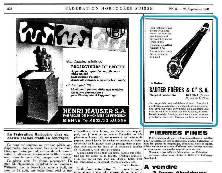 modifica su razón social por : Sauter Freres & Cie, Fabrique d'horlogerie <<Pierpoint>>