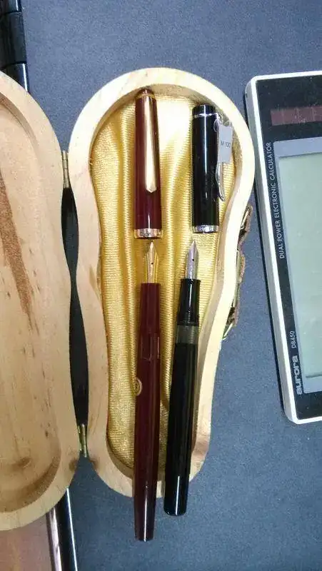 Pues yo titubeo. No tengo Pelikans, desconozco la marca y no se si merecen la pena. La negra creo que es una Pelikan 100 ¿Podría ser? Pero de la roja no tengo ni papa.