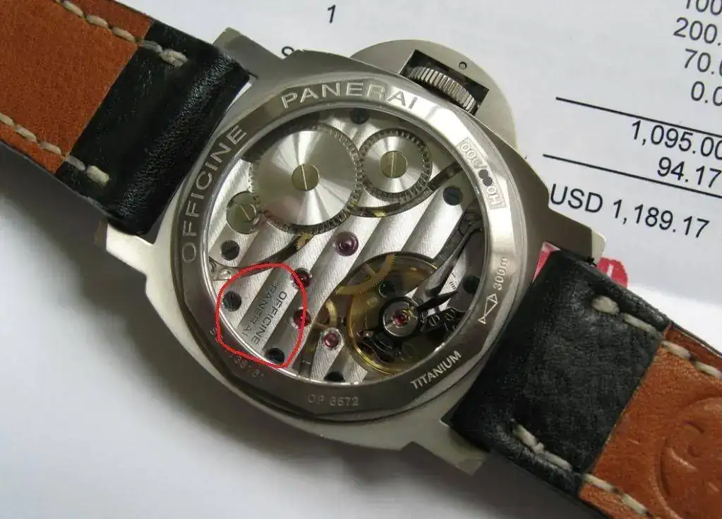 Las características del reloj son caja luminor de 44 mm, segundero a las 9, titanio, índices en alto relieve, dial negro, fondo visto, manual con típico calibre Base con cotes de geneve. Colocare 2 fotos y si resultan como sospecho un fake ruego sean borradas. Es que me molesta mucho que comerciantes (mercantes le dicen x acá) con experiencia en determinadas marcas aprovechen de su reputación y traten de vender sí o si una marca que desconocen (el