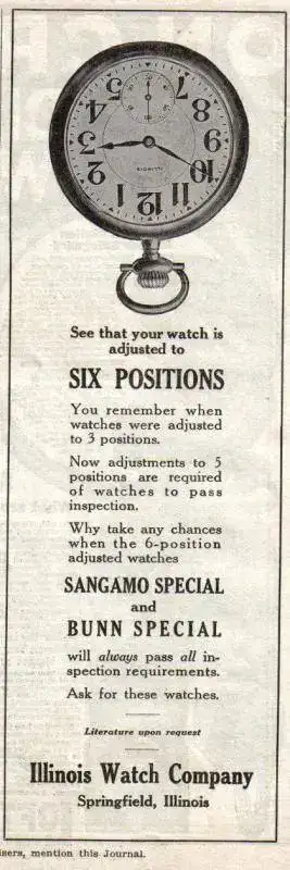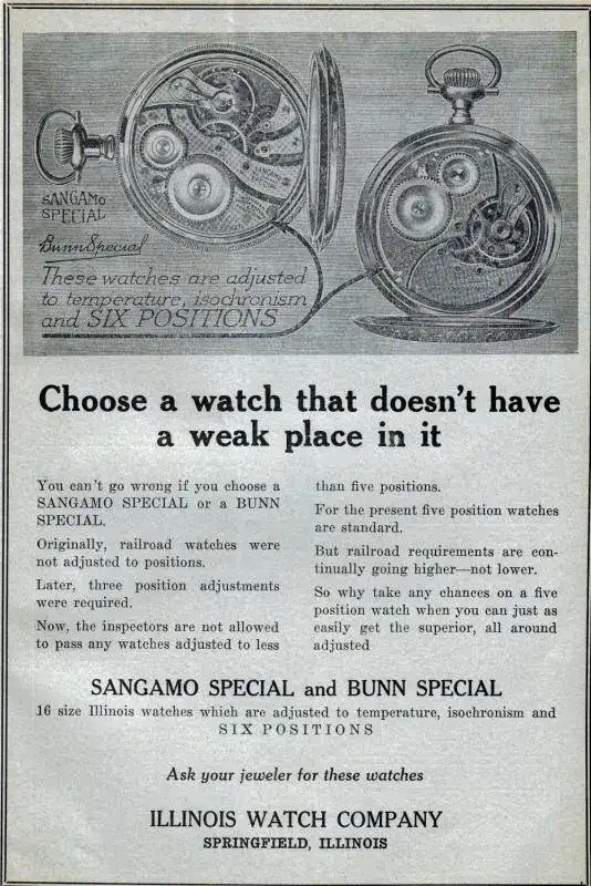 El Modelo 4 y el Modelo 5 de Sangamo se convirtieron en movimiento de Illinois premier de 16 tamaños, reemplazando el grado No. 179 alrededor de 1897. La clase Sangamo estaba disponible como 21 joyas y 23 joyas, ambas ajustadas a seis posiciones, y estaba destinada al mercado ferroviario desde su inicio. Un anuncio en The Railway Conductor en 1903 declaró que los relojes Sangamo "son buenos relojes duraderos fuertes y están diseñados especialmente para el servicio ferroviario donde el tiempo exacto es una necesidad absoluta." Entre 1897 y 1913 se realizaron más de 26.000 movimientos de grado Sangamo Modelo 4 y Modelo 5.