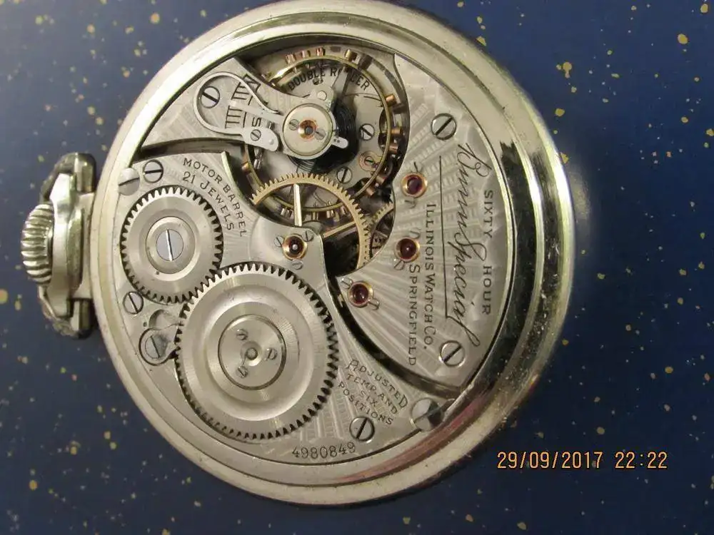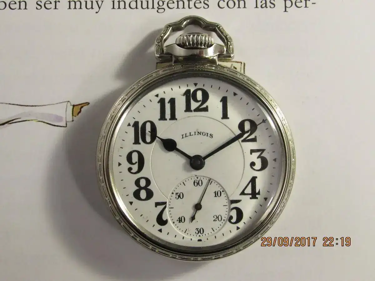 Me permito mostrar mi reloj de bolsillo marca Illinois , de 1926 , un año antes que esta manufactura fuera absorvida por Hamilton .
