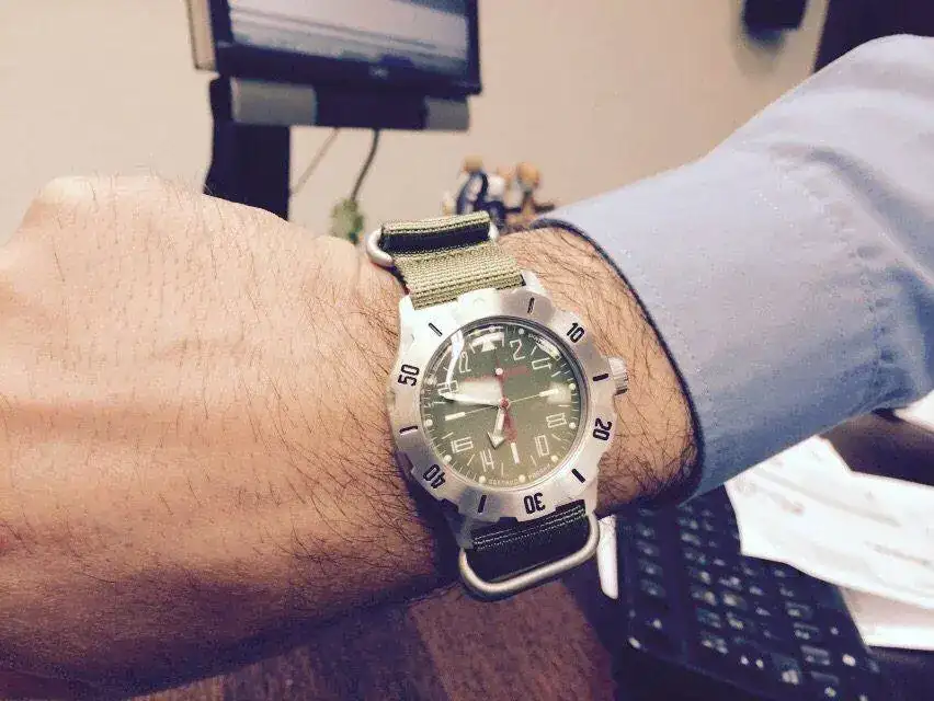 El komandirskie es un 100 metros, deberia aguantar una ducha...aunque ya sabes, mucha gente no lo recomienda ni en los suizos...