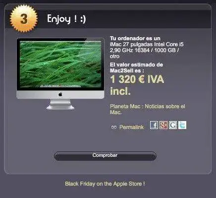 El precio que le pongo es de 1000€. Su tasación en mac2sell asciende a 1320€.
