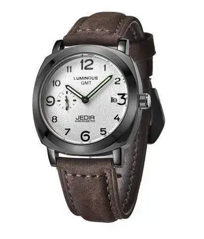 Había un reloj que me apasionaba ( también fuera de mi alcance ) que es el Panerai en cualquiera de sus versiones, así que buscando por las páginas chinas encontré un Megir y un Jedir, pienso de la misma fabrica con diferentes nombres, que eran una copia bastante fiel en forma a la del original.