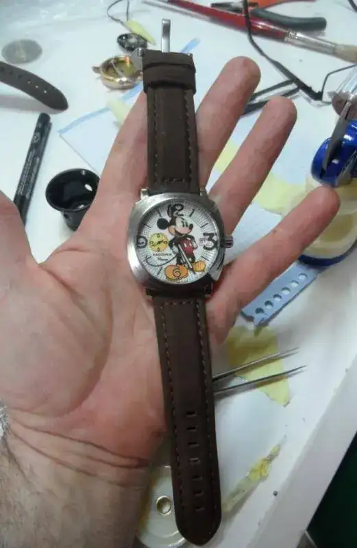 Hace unos meses a raiz de leer un post de los relojes con el Mickey mouse me empezaron a entrar ganas de buscar uno que fuese chulo, para adaptarlo a mi pequeña colección de relojes.
