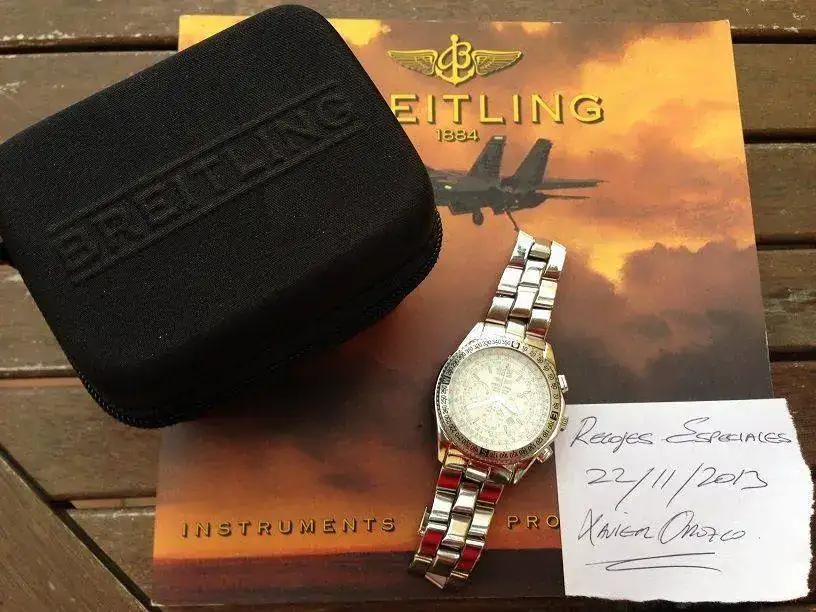 Se vende solo el reloj, con su cajita de servicio breitling hecho hace unos añitos, por ello el super precio para este tanque grande y gordito...