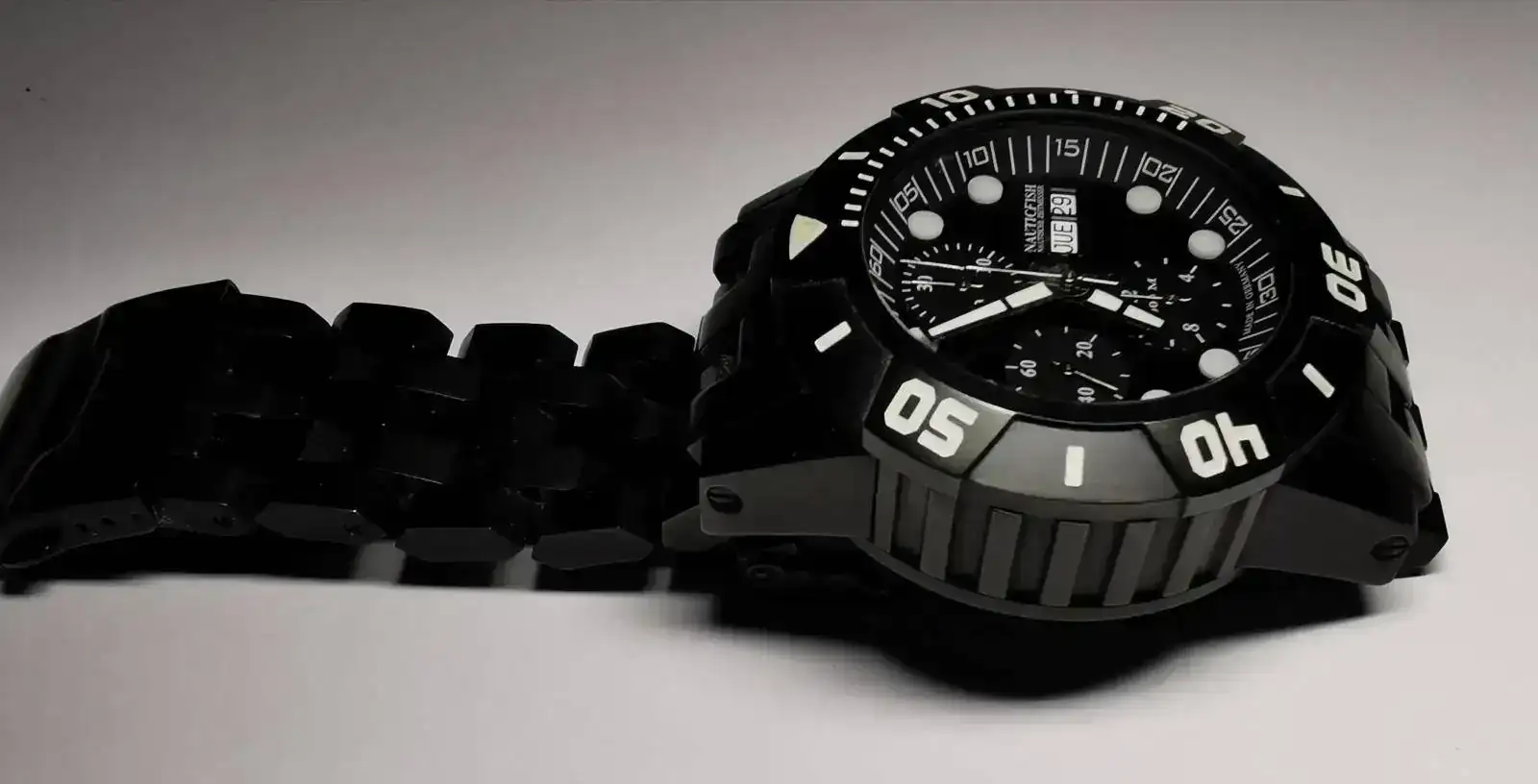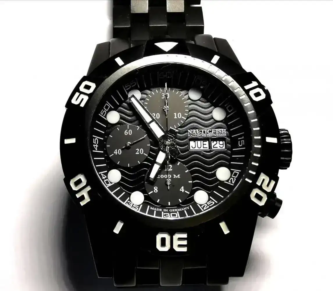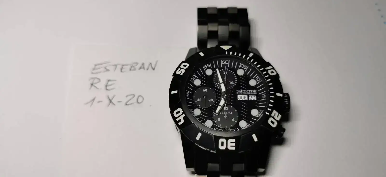 Pongo en venta este contundente Diver alemán "Nauticfish Waterwall 2T PVD" con calibre suizo Valjoux 7750 en un estado casi nuevo (he sido su único propietario).