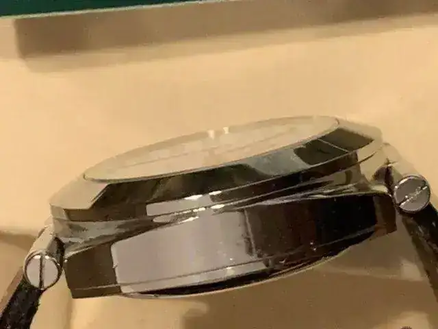 Caja de 40mm sin corona ni pulsadores. Parece más grande por sus garras integradas y su altura.