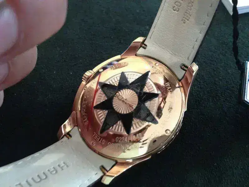 El modelo que saco a la venta es el Hamilton AquaRiva GMT en oro rosa, y cuenta con caja de 42 mm de diámetro, chapada en oro rosa de 10 micras, cristal de zafiro e impermeable hasta los 100 metros de profundidad. Caja, corona y cierre personalizados Riva, con el fondo de su esfera imitando el dibujo de la madera de las míticas lanchas italianas combinado con el mapamundi (en la esfera hay inserciones de madera de Teka y el mapamundi ha sido fabricado con latón cromado en relieve). Dispone de movimiento automático ETA, Calibre 2893-2, 21 rubíes, Incabloc, 28,800 vph, con reserva de marcha de 40 horas, función GMT e indicador de día a las cuatro. Correa de piel.