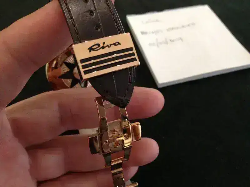 Riva es una empresa italiana diseñadora y constructora de yates de lujo. Las embarcaciones Riva son puro arte sobre el agua. Famosas en el mundo entero, han aparecido en innumerables películas. Siempre asociadas al glamour y el lujo de la rivera francesa o italiana. Esta empresa se fundo en 1842 y ese es el Nº de relojes de esta edición limitada de Hamilton (esta pieza es la 224 de 1842).