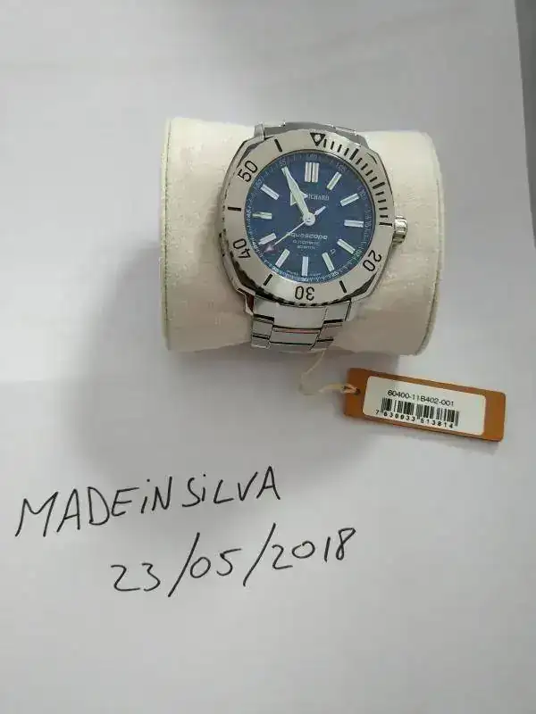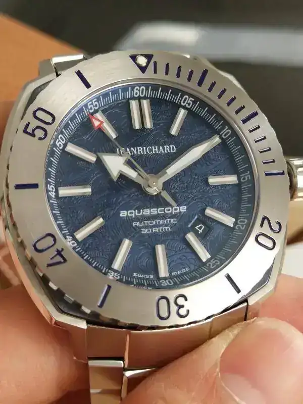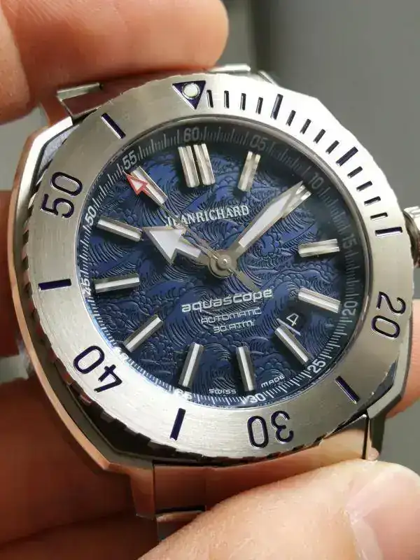 Su dial es hipnótico, con una tonalidad que va desde una oscuridad casi negro, a un tono azul vibrante con unos brillos que hacen no poder dejar de mirarlo.