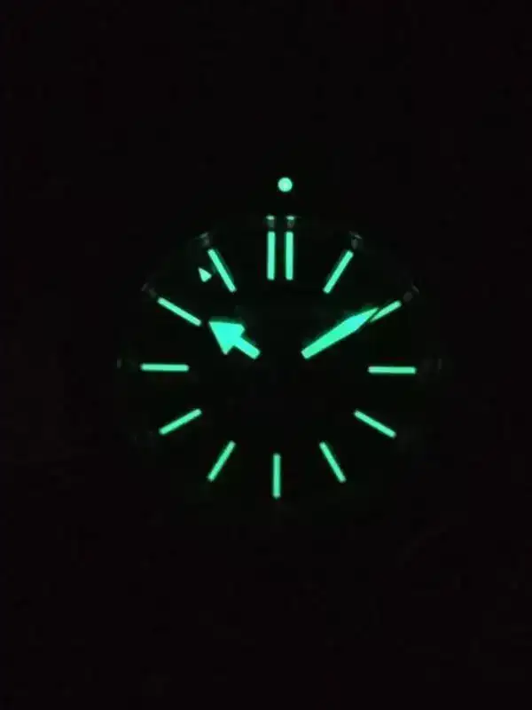 Las agujas e índices se encuentran rodiados y son de tamaño grande con un fondo blanco nuclear que las hace muy legibles. Presentan una generosa capa de superluminova que permiten su visibilidad en cualquier condición.