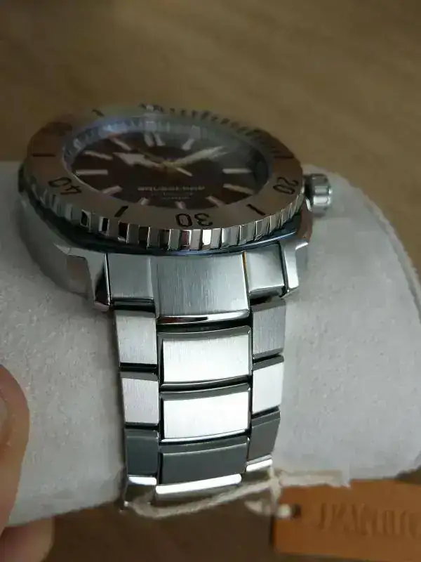 Con una resistencia al agua de 300 metros, se trata de un diver en toda regla con su corona roscada que presenta el logo de la marca en relieve y un agradable tacto.