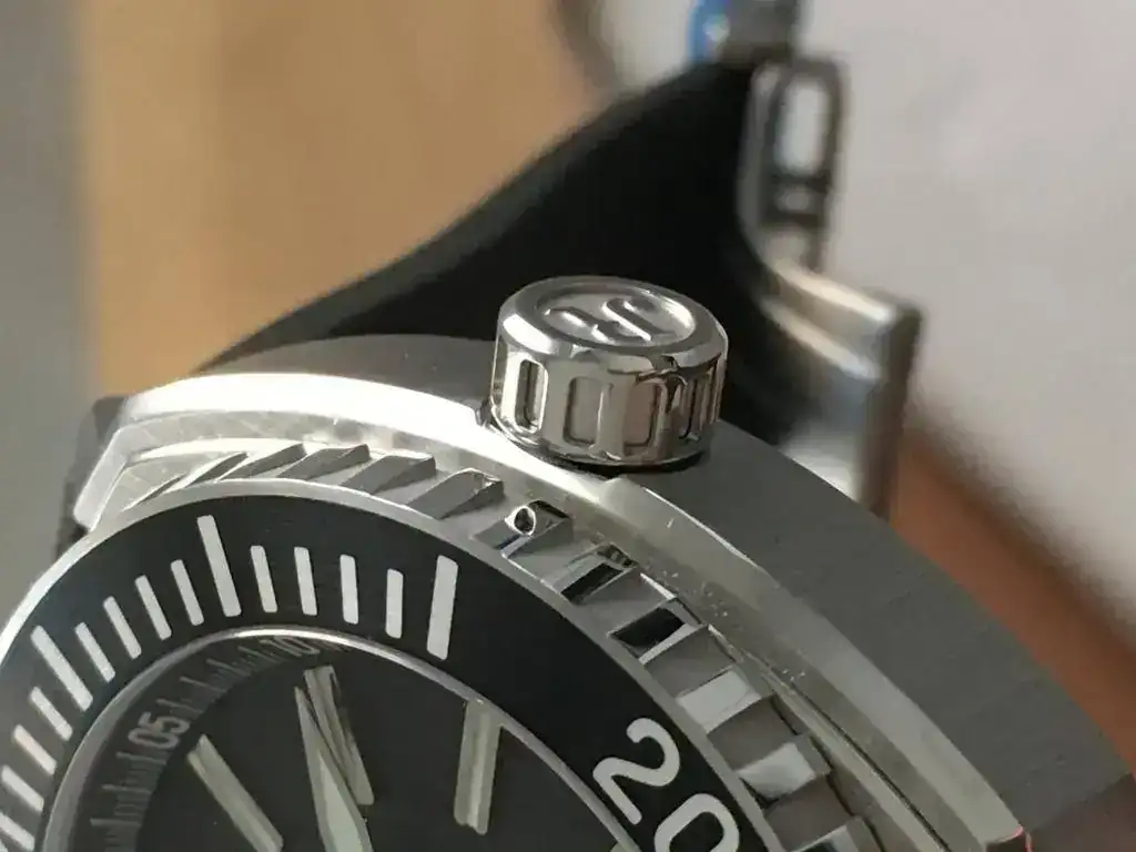 Con una resistencia al agua de 300 metros, se trata de un diver en toda regla con su corona roscada que presenta el logo de la marca en relieve y un agradable tacto.