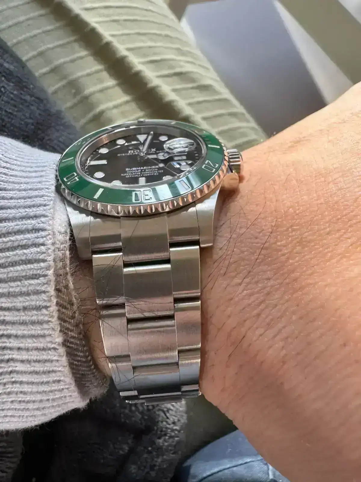 Verlo en vivo es una delicia… se disfruta mucho, casi diría yo que tiene más encanto que el archifamoso Hulk, en mi humilde opinión.. el negro contrasta mucho con este verde del bisel… y lo hace muy atractivo visualmente