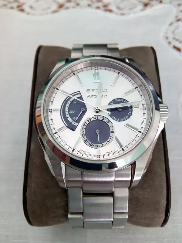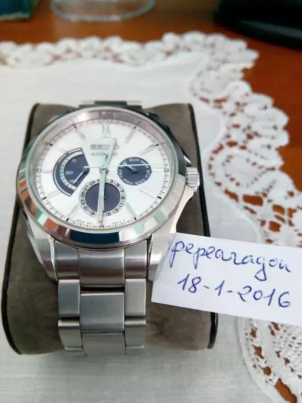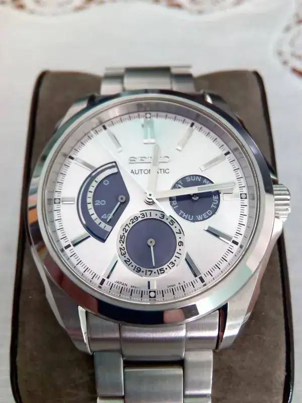 Hola: Saco sólo para venta, y porque voy a por uno de mis griales, este bonito, y muy difícil de conseguir, reloj Seiko hecho para el mercado japonés. Posee reserva de marcha, día del mes y día de la semana. Muy buen estado, sólo algunos microarañazos en armix. No poseo caja ni documentación, si no el precio sería mayor. Su calibre lo montan los Ananta. Contacto por privado.