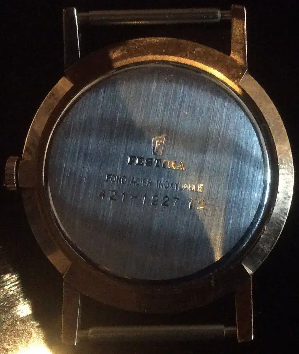 El problema es que la caja no es la original, (esta que ves es producto de una mala restauración, (la caja es Festina), lo pone la tapa...