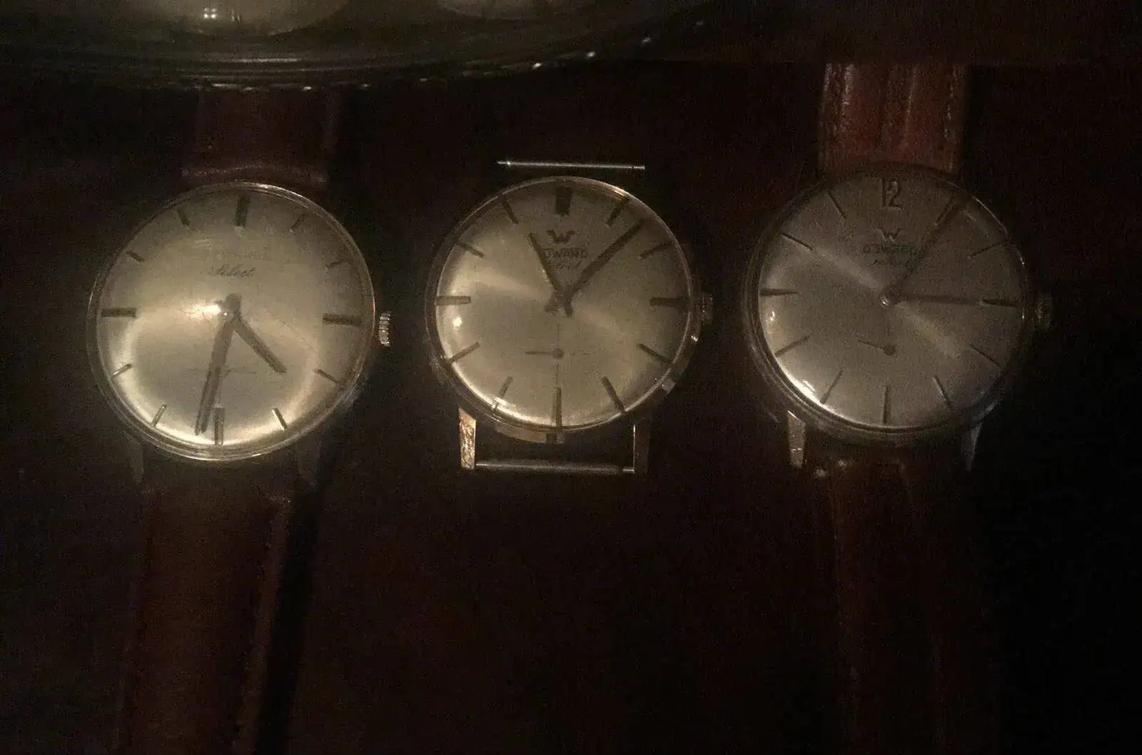 Sólo encontré una foto con dos de los comprados y el original, pero tengo otro más (Ninguno de los 4 son idénticos, si la caja, pero en el dial varían en la marca de las 12).