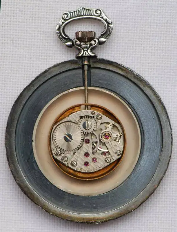 Maquinaria FHF 69-21 suiza aproximadamente de 1970, con 17 rubíes y cuerda manual y 21600 alternancias /hora. La duración de la cuerda es de 47 horas.