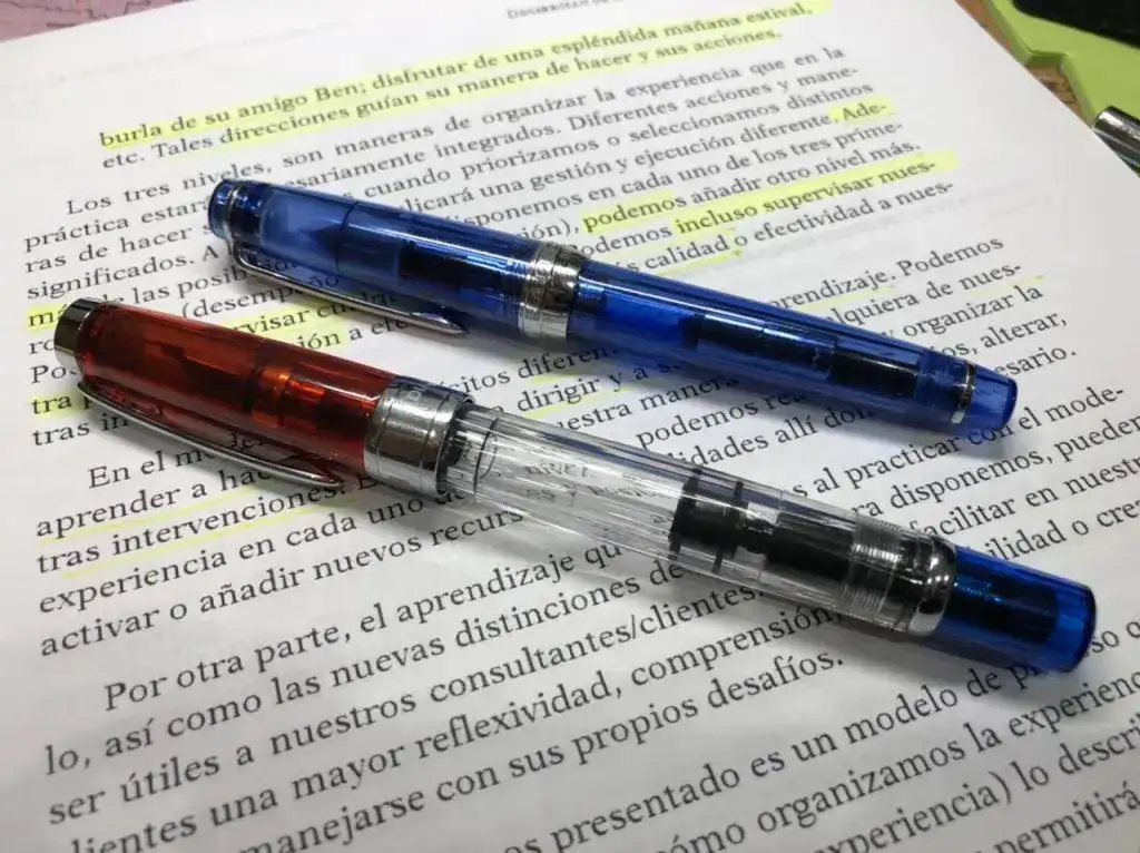 Las Twsbi, en mi experiencia, escriben bien, y son bonitos diseños de pluma grande y con una capacidad de tinta de una cisterna. A quienes se les haya cuarteado el plástico echarán pestes toda la vida: no es mi caso. Y no recuerdo que costaran tanto como 100 E. Pagar 100 por eso lo encuentro desmadrao. La que más me gustó fue la ECO que rondaba los 40.