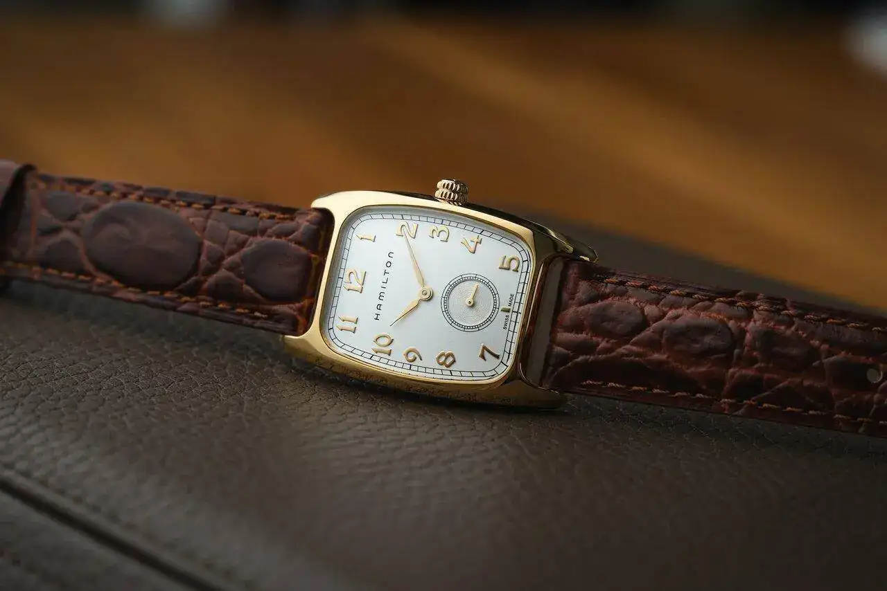 No hubiese desentonado para nada un Hamilton o Bulova de la época con sus complementos habituales