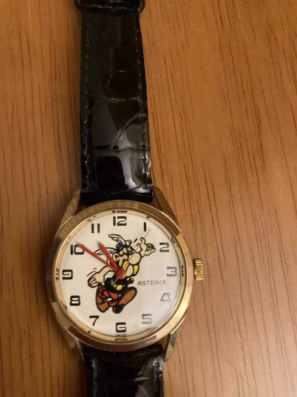 Pues eso me gustaría tener información sobre este reloj que me regaló mi padre para mi comunión en el año 1981 es de cuerda maquinaria suiza con el dibujo de Asterisco comprado en Francia, el cual han llevado mis críos también en sus respectivas comuniones en los años 2017 y 2020 funcionando correctamente. Gracias por la información que me podáis aportar si alguien tiene alguno parecido
