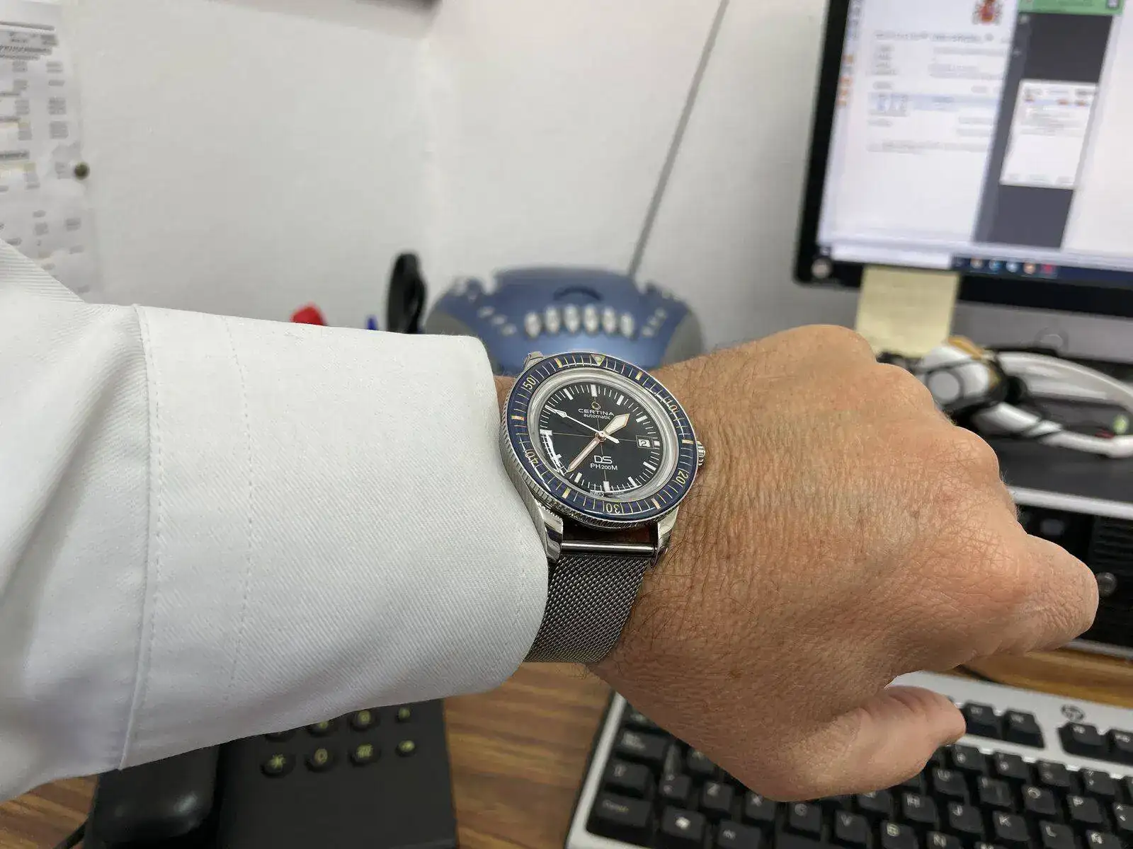 Tengo un certina ds action diver que creo que son 43 y se me hace muy pesado he incomodo llevarlo con armis. Y casi siempre lo llevo con NATO.