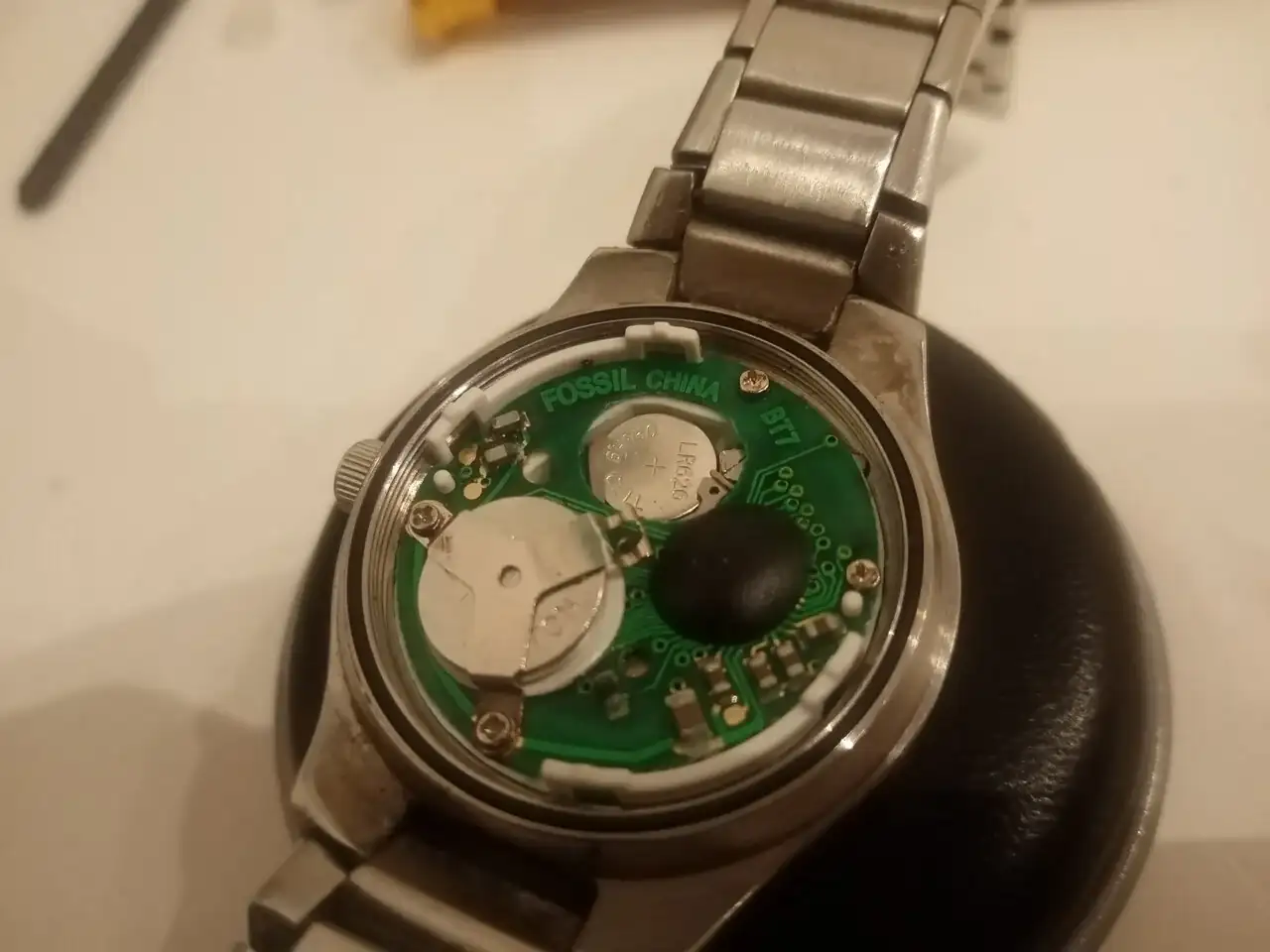 ¿Conocéis estos Big Tic de Fossil con 2 pilas? Una pila alimenta las agujas analógicas y otra la pantalla digital de fondo (en algunos da forma a los segundos digitales, y en este, supuestamente, a símbolos Chinos; que no he logrado ver pues no logro que funcione).
