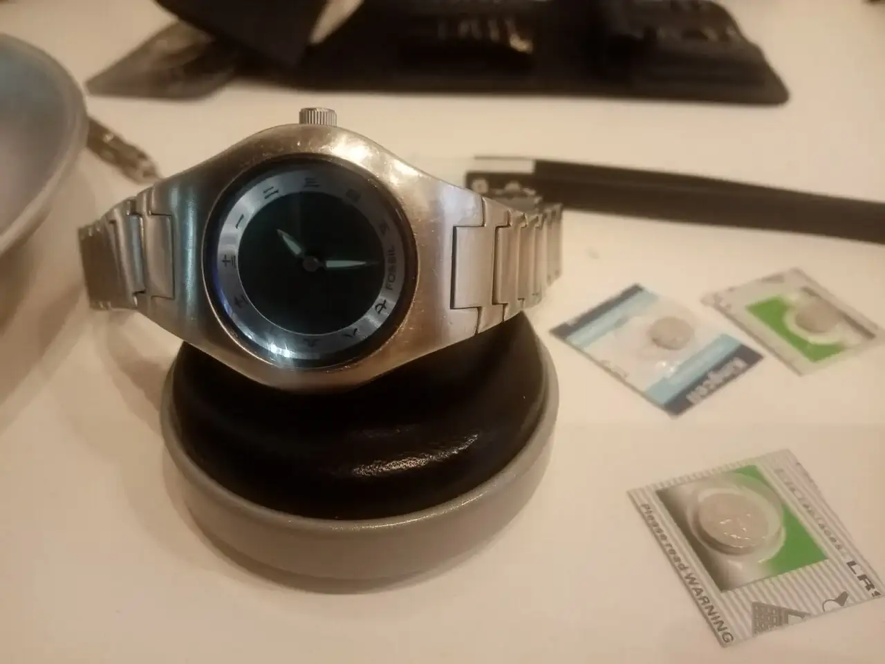 Me parece son de los años 90, o inicios del 2000 (espero me corrijáis), a este concretamente, le cambié las pilas tras recibirlo hace unos días en herencia de un amigo que dejó de usar relojes de verdad, sean mecánicos o de cuarzo, pues cayó en usar solo pulseras de actividad, o los mal llamados SmartWatch.