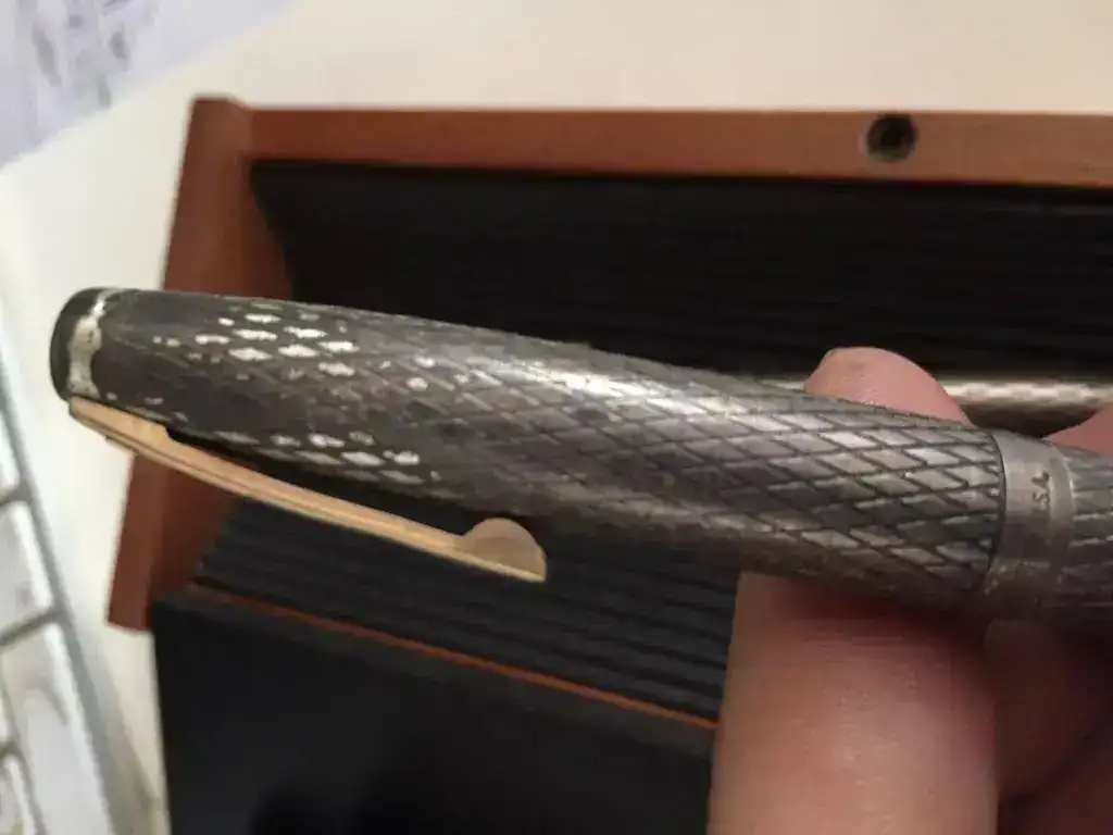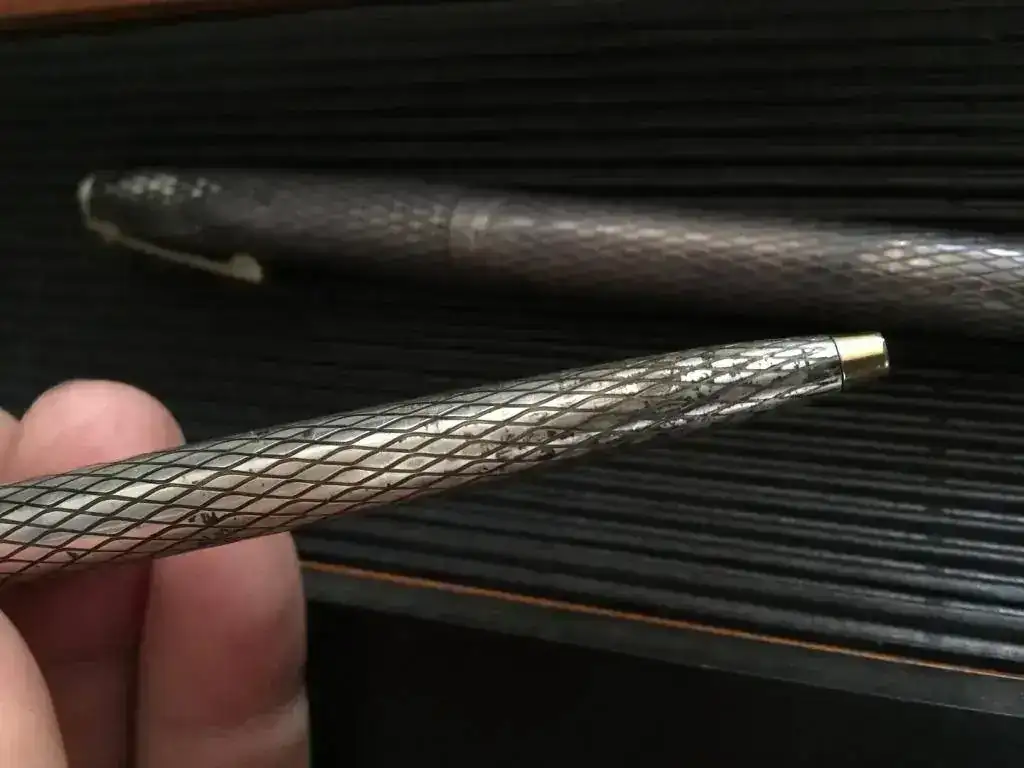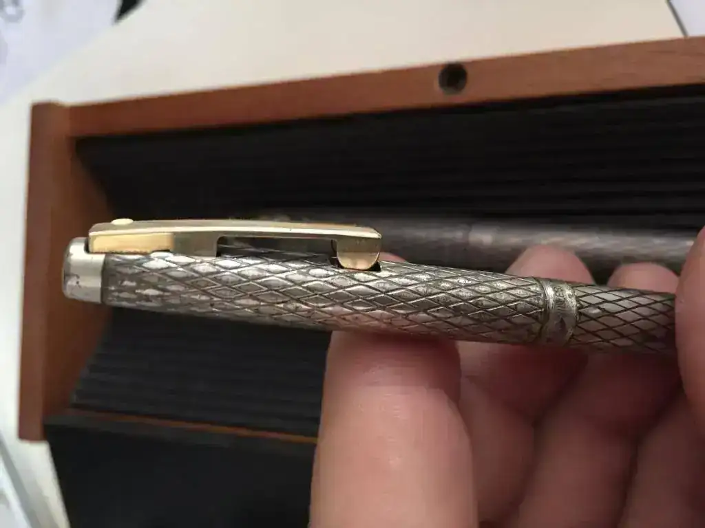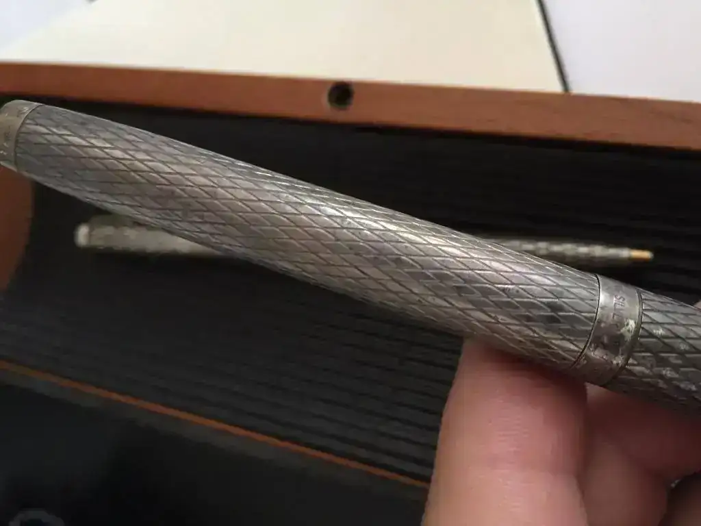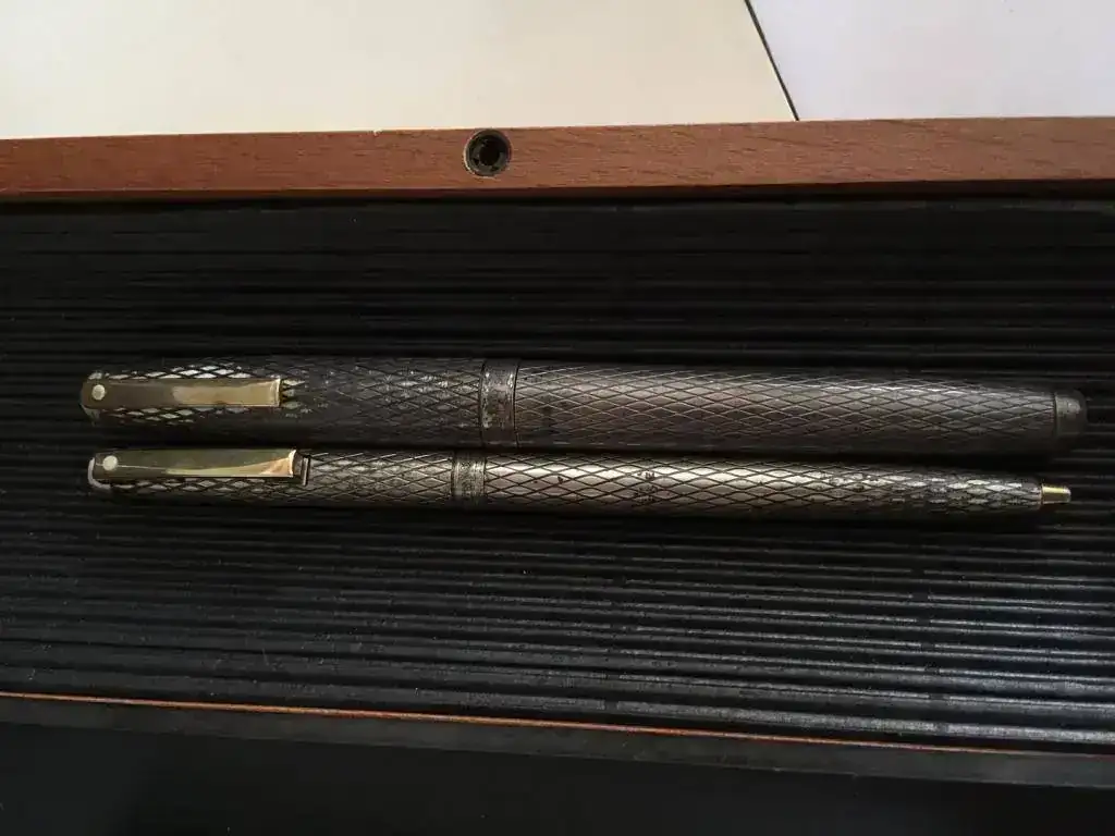 Ante todo, me presento. No tengo ni idea de este mundo. Buscando por los cajones, me he encontrado un juego de bolígrafo pluma Sheaffer de plata plumín de oro.