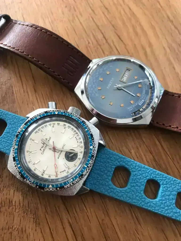 seguramente acabe cayendo un cronografo de esos algún día... los veo super interesantesEl caso de los Ruhla es muy meritorio. Serán calibres sencillos, pero no hay que olvidar que Alemania quedó destruida y en el otro lado del muro, no tuvieron los recursos necesarios para crecer como lo hicieron sus vecinos occidentales. Sin embargo fabricaron millones de relojes para su población. La web sobre Ruhla, que gestiona un compañero de watchuseek es una maravilla; hay un montón de muy buena información. Aquí un Crono flyback de un buen amigo mío.