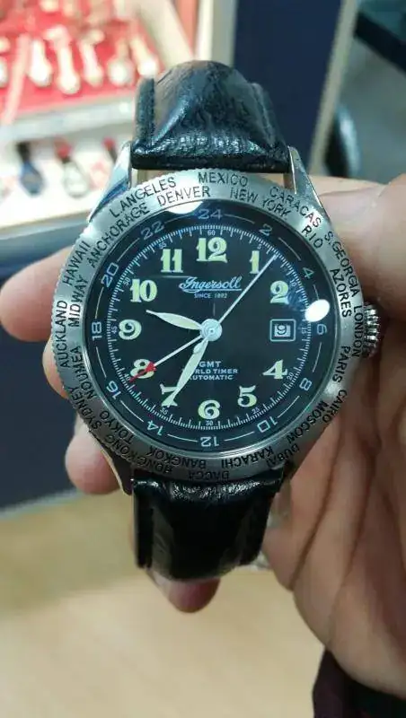 Hola amigos, sigo en búsqueda de un reloj GMT de calidad sin tener que pagar no menos de 1000 euros (ojo, que si no quiero pagar mil tampoco quiero pagar 600) por lo que Steinhart se hace la opción mas obvia. Me he encontrado este reloj Ingersoll automático pero no tengo información de el, alguien que me diga algo más?