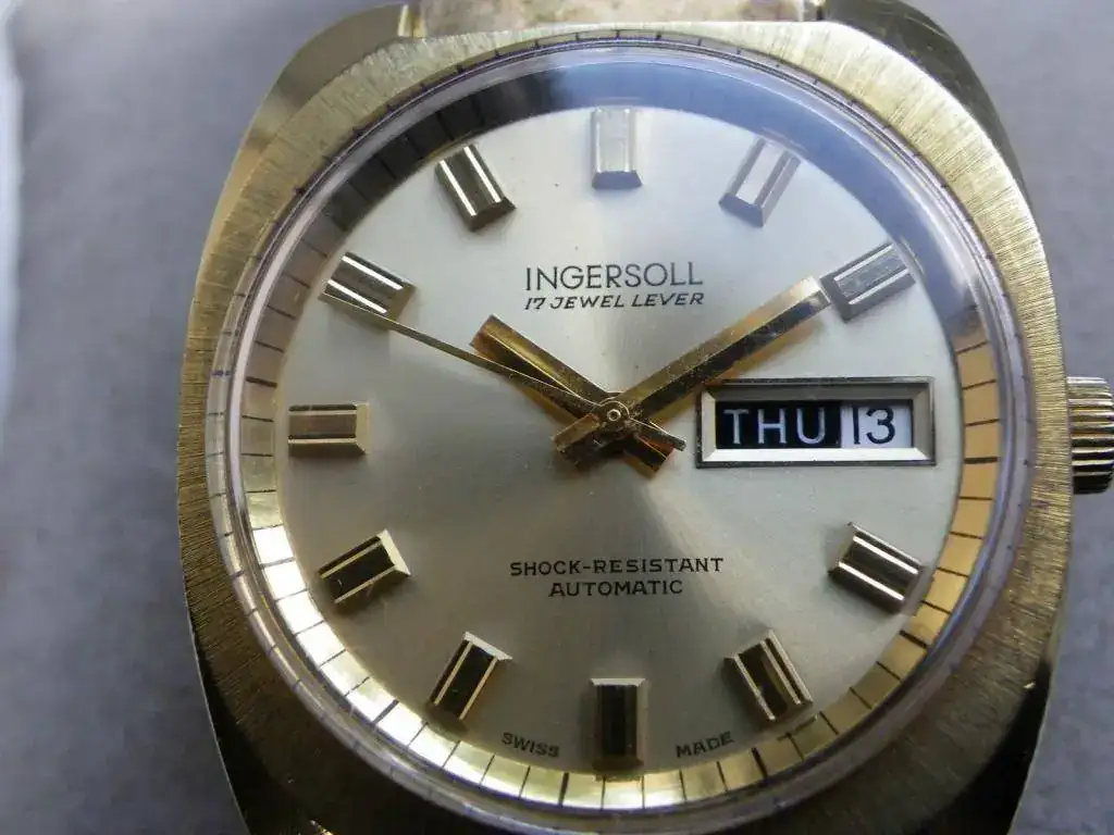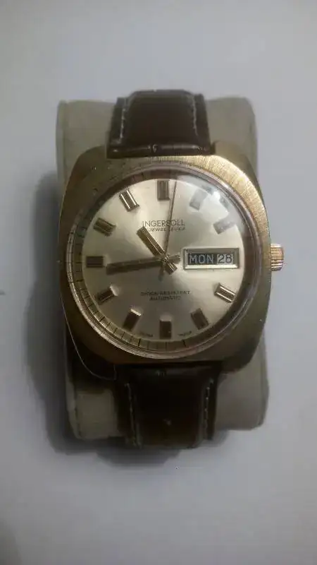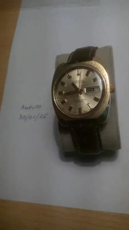 Vendo un reloj vintage marca Ingersoll automático en muy buen estado de conservación. Funciona correctamente, pero no he controlado la precisión ya que es un reloj que no me pongo. La correa está en buen estado estético pero recomiendo cambiarla por su mala calidad, incluyo en el envío la correa dorada extensible que traía (desconozco si es original o no). Tiene el robusto y fiable calibre AS 1916. El día se cambia pulsando la corona.