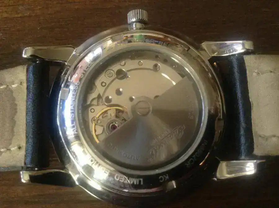 Lo que se vea raro sobre la caja son sombras y manchitas. La correa tiene una mancha detras que se puede limpiar pero no afecta en nada.